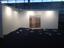 Associé à cette image, un éparpillement de formes en plâtre teint s’installe au sol. Ces modules font référence à l’événement ainsi qu’à la ruine. Sont-ce les pierres de la ville ou des restes de fondation ? Ces semblant d’orifices qui s’inscrivent entre l’organique et le minéral, sont disposés comme les étoiles pendant la nuit du tremblement de terre.